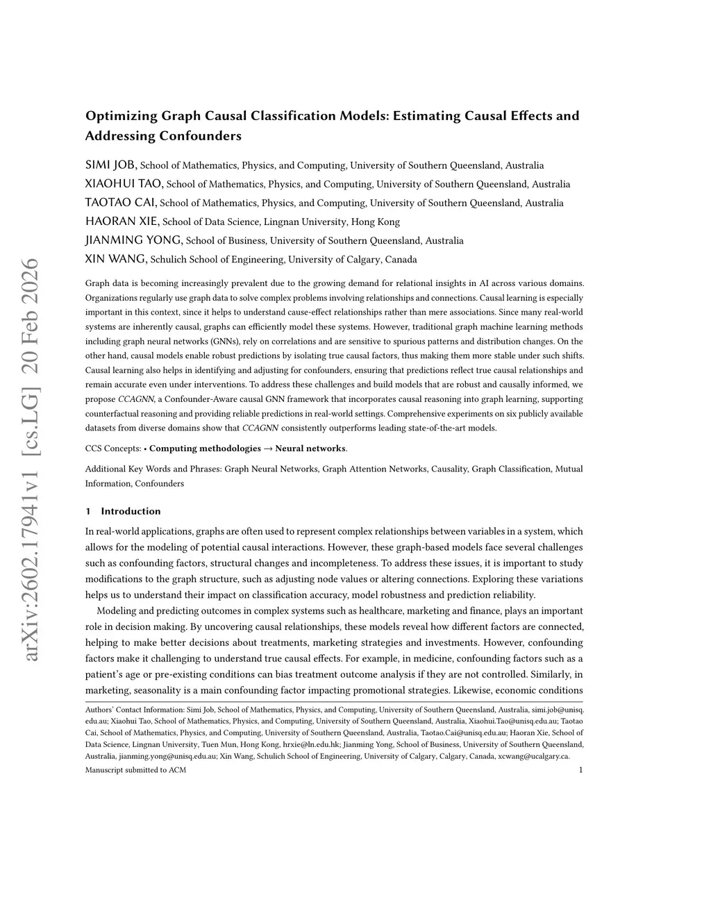 Optimizing Graph Causal Classification Models: Estimating Causal Effects and Addressing Confounders