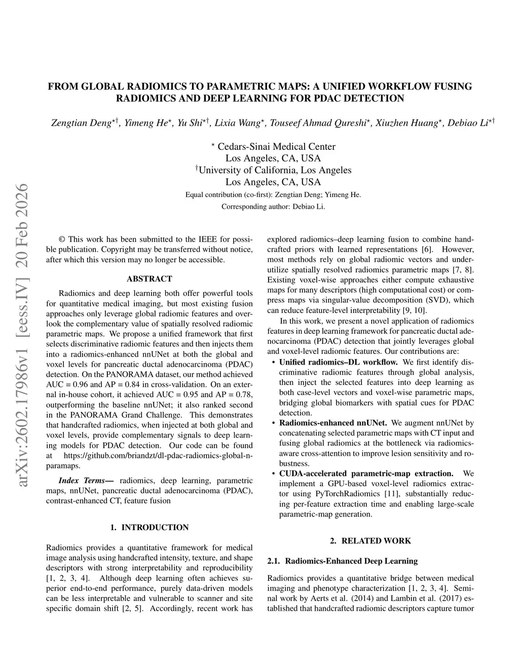 From Global Radiomics to Parametric Maps: A Unified Workflow Fusing Radiomics and Deep Learning for PDAC Detection