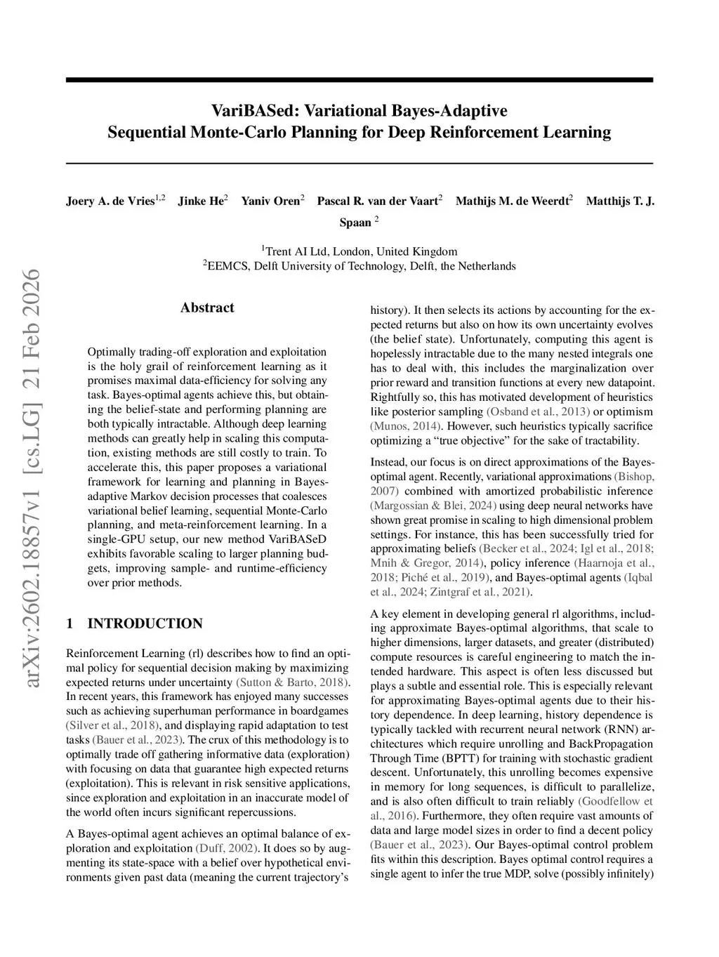 VariBASed: Variational Bayes-Adaptive Sequential Monte-Carlo Planning for Deep Reinforcement Learning