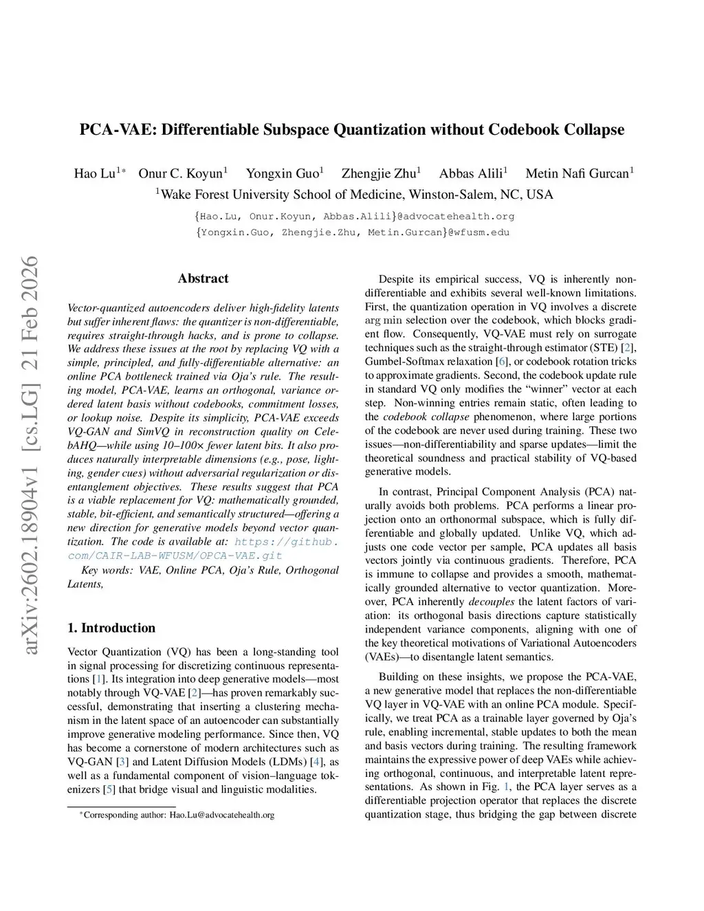 Vector-quantized autoencoders deliver high-fidelity latents but suffer inherent flaws: the quantizer is non-differentiable, requires straight-through hacks, and is prone to collapse. We address these issues at the root by replacing VQ with a simple, principled, and fully differentiable alternative: an online PCA bottleneck trained via Oja's rule. The resulting model, PCA-VAE, learns an orthogonal, variance-ordered latent basis without codebooks, commitment losses, or lookup noise. Despite its simplicity, PCA-VAE exceeds VQ-GAN and SimVQ in reconstruction quality on CelebAHQ while using 10-100x fewer latent bits. It also produces naturally interpretable dimensions (e.g., pose, lighting, gender cues) without adversarial regularization or disentanglement objectives. These results suggest that PCA is a viable replacement for VQ: mathematically grounded, stable, bit-efficient, and semantically structured, offering a new direction for generative models beyond vector quantization.