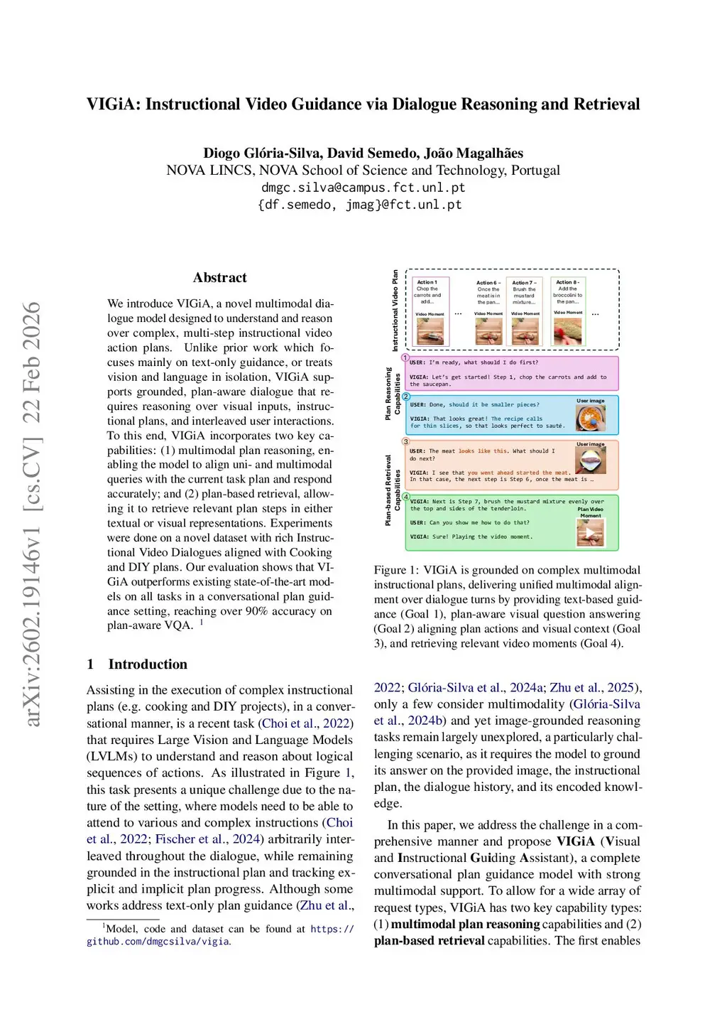 VIGiA: Instructional Video Guidance via Dialogue Reasoning and Retrieval