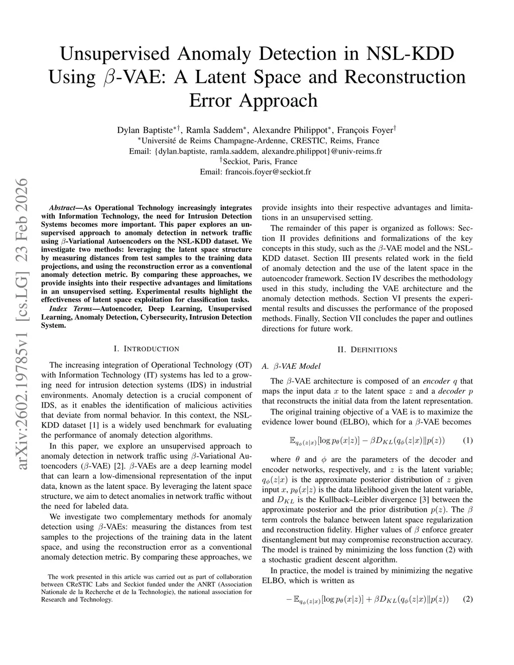 Unsupervised Anomaly Detection in NSL-KDD Using -VAE: A Latent Space and Reconstruction Error Approach