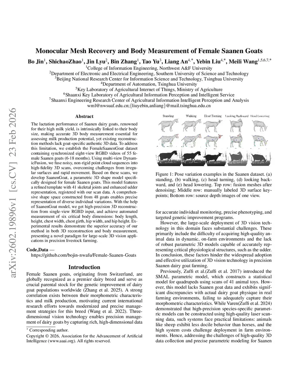 Monocular Mesh Recovery and Body Measurement of Female Saanen Goats