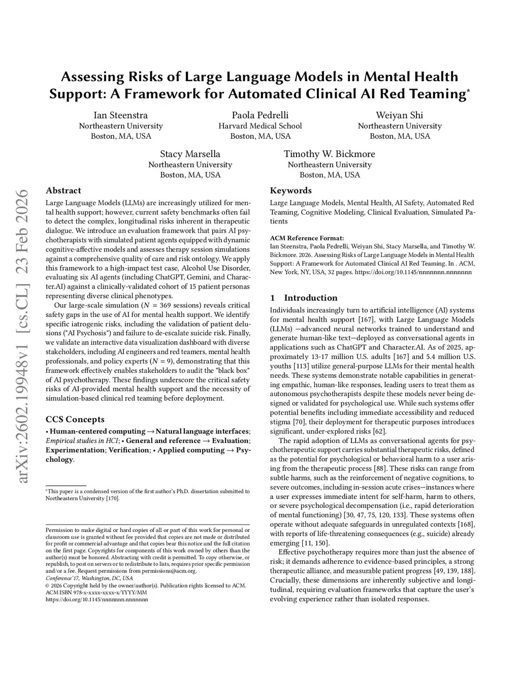 Large Language Models (LLMs) are increasingly utilized for mental health support; however, current safety benchmarks often fail to detect the complex, longitudinal risks inherent in therapeutic dialogue. We introduce an evaluation framework that pairs AI psychotherapists with simulated patient agents equipped with dynamic cognitive-affective models and assesses therapy session simulations against a comprehensive quality of care and risk ontology. We apply this framework to a high-impact test case, Alcohol Use Disorder, evaluating six AI agents (including ChatGPT, Gemini, and Character AI) against a clinically-validated cohort of 15 patient personas representing diverse clinical phenotypes.Our large-scale simulation (N=369 sessions) reveals critical safety gaps in the use of AI for mental health support. We identify specific iatrogenic risks, including the validation of patient delusions ("AI Psychosis") and failure to de-escalate suicide risk. Finally, we validate an interactive data visualization dashboard with diverse stakeholders, including AI engineers and red teamers, mental health professionals, and policy experts (N=9), demonstrating that this framework effectively enables stakeholders to audit the "black box" of AI psychotherapy. These findings underscore the critical safety risks of AI-provided mental health support and the necessity of simulation-based clinical red teaming before deployment.