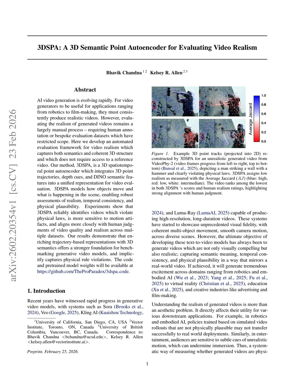 3DSPA: A 3D Semantic Point Autoencoder for Evaluating Video Realism