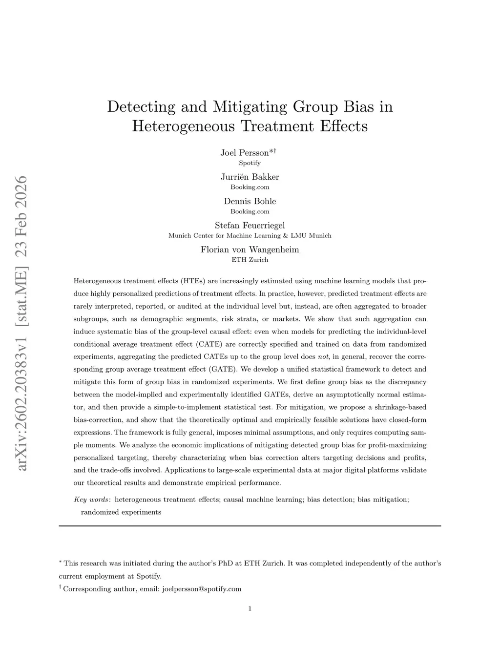 Heterogeneous treatment effects (HTEs) are increasingly estimated using machine learning models that produce highly personalized predictions of treatment effects. In practice, however, predicted treatment effects are rarely interpreted, reported, or audited at the individual level but, instead, are often aggregated to broader subgroups, such as demographic segments, risk strata, or markets. We show that such aggregation can induce systematic bias of the group-level causal effect: even when models for predicting the individual-level conditional average treatment effect (CATE) are correctly specified and trained on data from randomized experiments, aggregating the predicted CATEs up to the group level does not, in general, recover the corresponding group average treatment effect (GATE). We develop a unified statistical framework to detect and mitigate this form of group bias in randomized experiments. We first define group bias as the discrepancy between the model-implied and experimentally identified GATEs, derive an asymptotically normal estimator, and then provide a simple-to-implement statistical test. For mitigation, we propose a shrinkage-based bias-correction, and show that the theoretically optimal and empirically feasible solutions have closed-form expressions. The framework is fully general, imposes minimal assumptions, and only requires computing sample moments. We analyze the economic implications of mitigating detected group bias for profit-maximizing personalized targeting, thereby characterizing when bias correction alters targeting decisions and profits, and the trade-offs involved. Applications to large-scale experimental data at major digital platforms validate our theoretical results and demonstrate empirical performance.