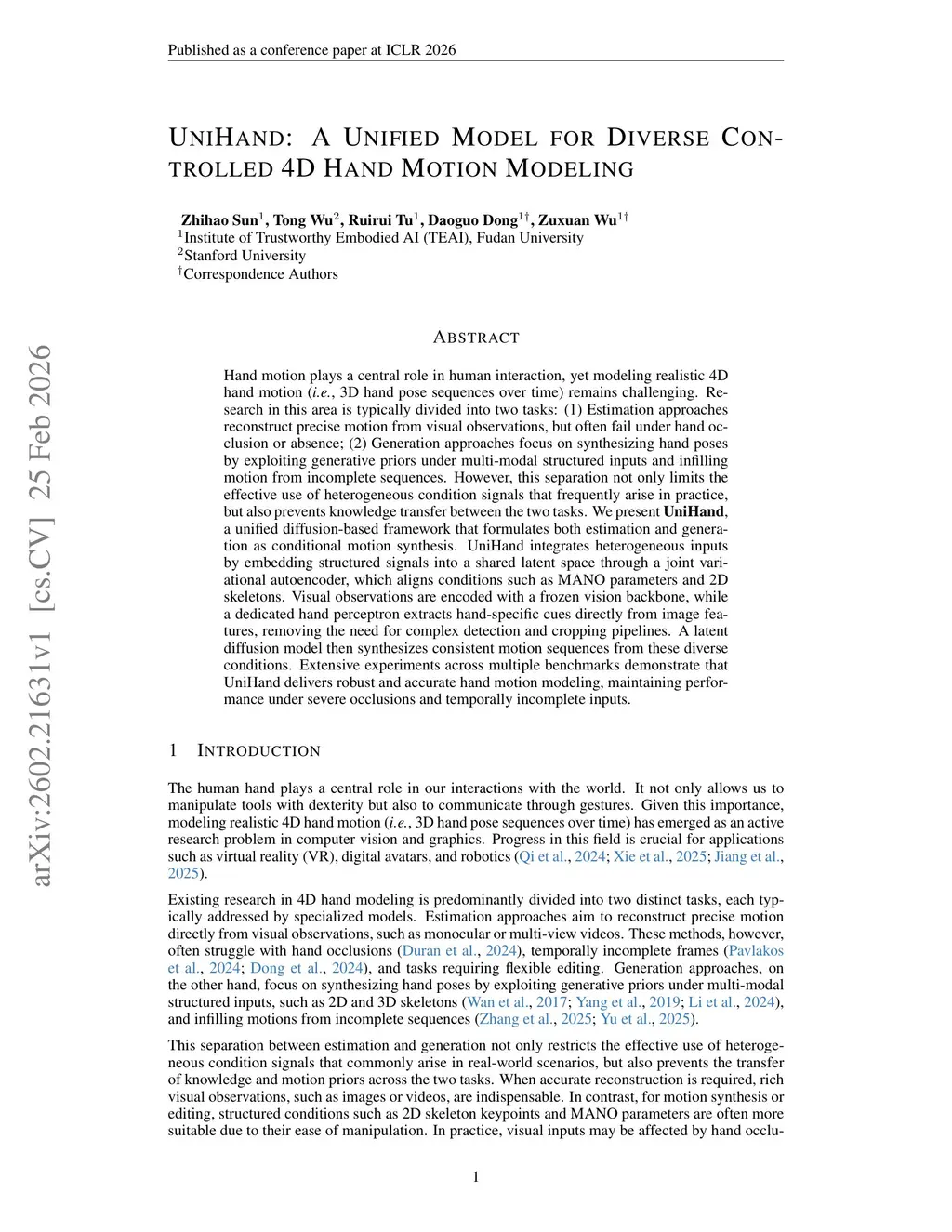 UniHand: A Unified Model for Diverse Controlled 4D Hand Motion Modeling