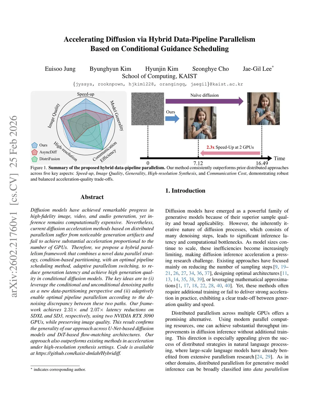 Accelerating Diffusion via Hybrid Data-Pipeline Parallelism Based on Conditional Guidance Scheduling