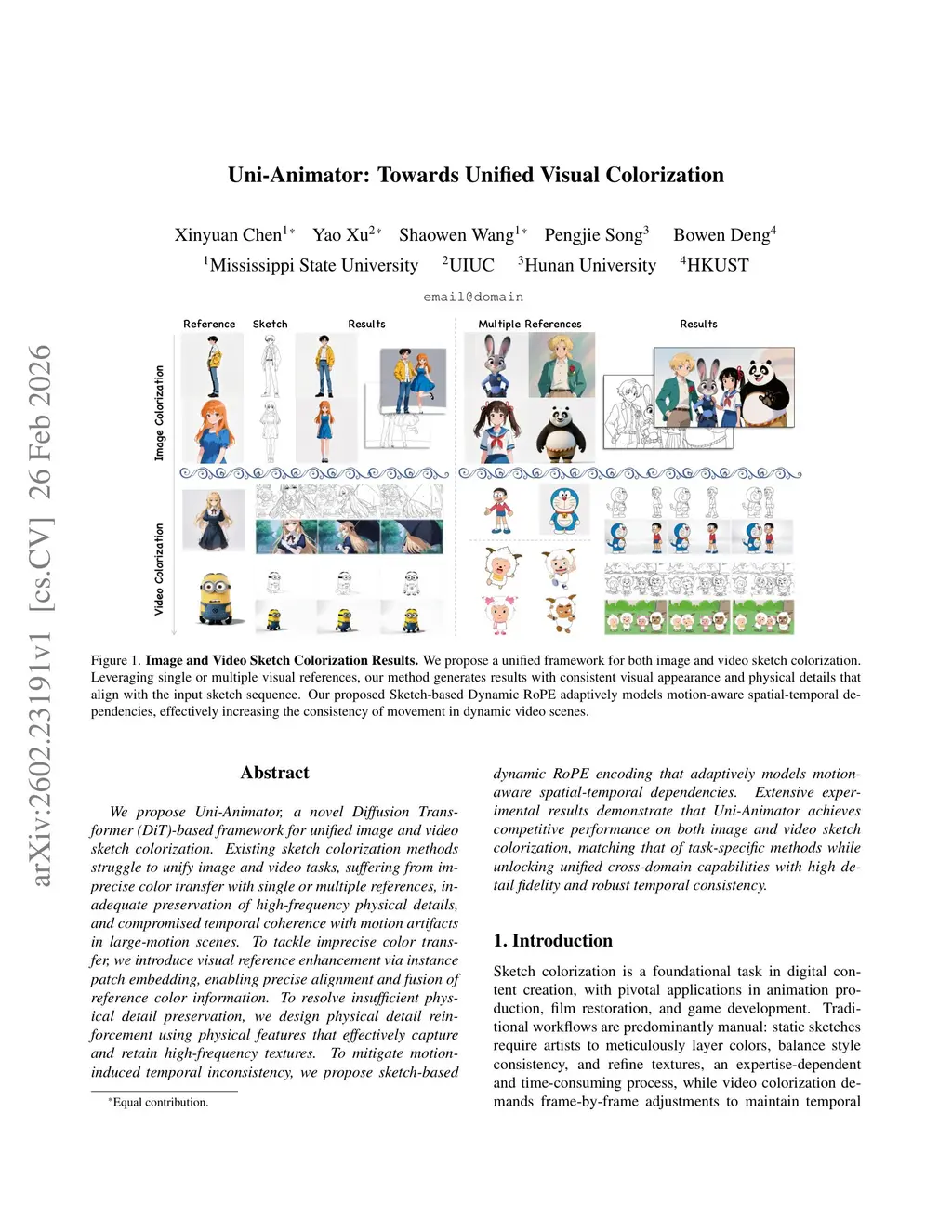 We propose Uni-Animator, a novel Diffusion Transformer (DiT)-based framework for unified image and video sketch colorization. Existing sketch colorization methods struggle to unify image and video tasks, suffering from imprecise color transfer with single or multiple references, inadequate preservation of high-frequency physical details, and compromised temporal coherence with motion artifacts in large-motion scenes. To tackle imprecise color transfer, we introduce visual reference enhancement via instance patch embedding, enabling precise alignment and fusion of reference color information. To resolve insufficient physical detail preservation, we design physical detail reinforcement using physical features that effectively capture and retain high-frequency textures. To mitigate motion-induced temporal inconsistency, we propose sketch-based dynamic RoPE encoding that adaptively models motion-aware spatial-temporal dependencies. Extensive experimental results demonstrate that Uni-Animator achieves competitive performance on both image and video sketch colorization, matching that of task-specific methods while unlocking unified cross-domain capabilities with high detail fidelity and robust temporal consistency.
