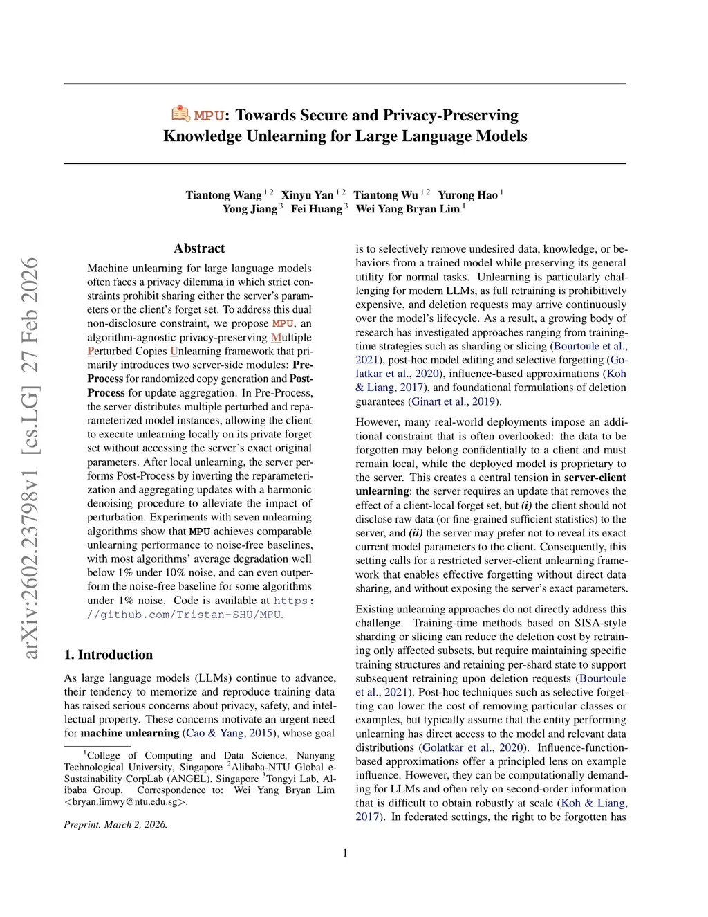 MPU: Towards Secure and Privacy-Preserving Knowledge Unlearning for Large Language Models