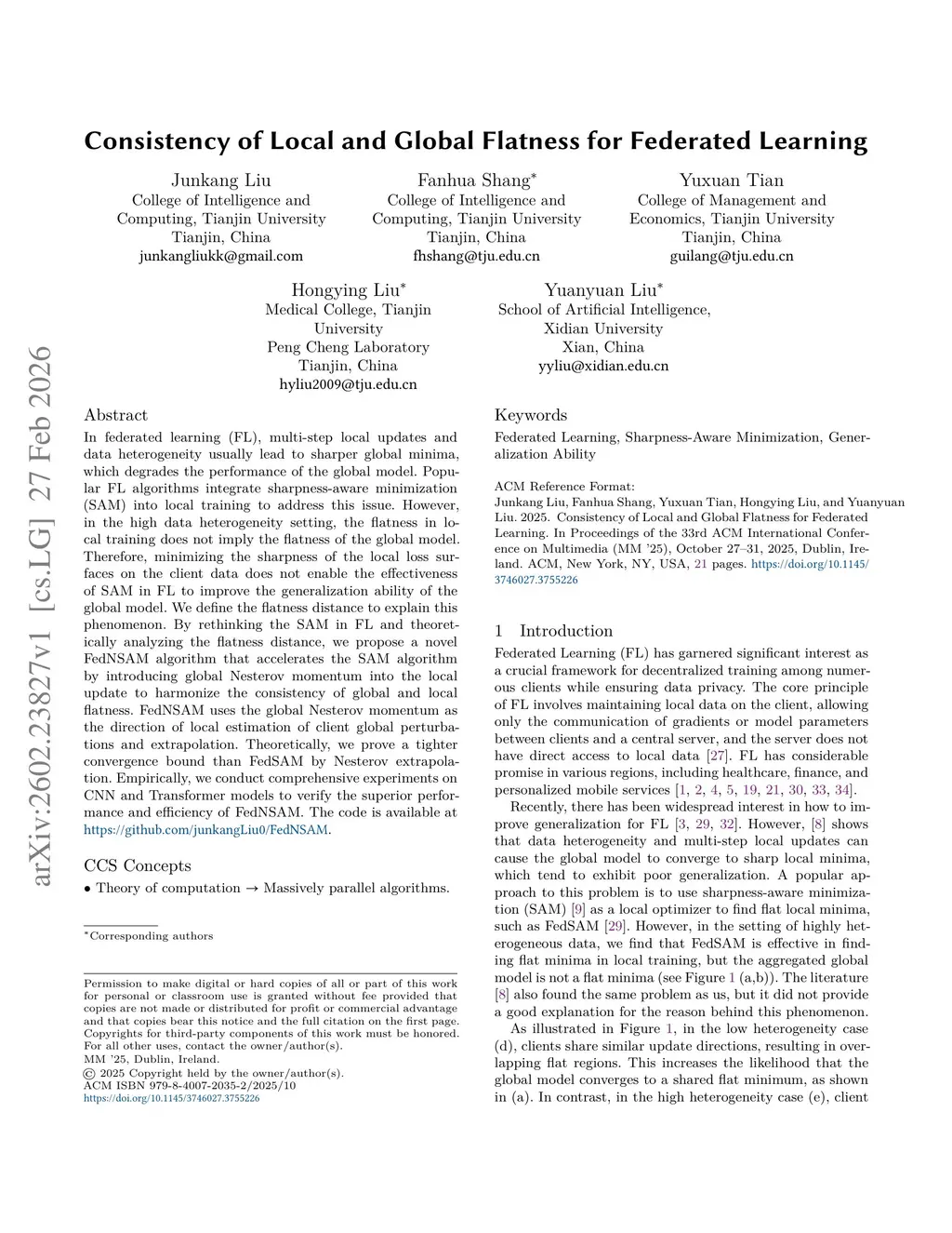 In federated learning (FL), multi-step local updates and data heterogeneity usually lead to sharper global minima, which degrades the performance of the global model. Popular FL algorithms integrate sharpness-aware minimization (SAM) into local training to address this issue. However, in the high data heterogeneity setting, the flatness in local training does not imply the flatness of the global model. Therefore, minimizing the sharpness of the local loss surfaces on the client data does not enable the effectiveness of SAM in FL to improve the generalization ability of the global model. We define the \textbf{flatness distance} to explain this phenomenon. By rethinking the SAM in FL and theoretically analyzing the \textbf{flatness distance}, we propose a novel \textbf{FedNSAM} algorithm that accelerates the SAM algorithm by introducing global Nesterov momentum into the local update to harmonize the consistency of global and local flatness. \textbf{FedNSAM} uses the global Nesterov momentum as the direction of local estimation of client global perturbations and extrapolation. Theoretically, we prove a tighter convergence bound than FedSAM by Nesterov extrapolation. Empirically, we conduct comprehensive experiments on CNN and Transformer models to verify the superior performance and efficiency of \textbf{FedNSAM}. The code is available atthis https URL.