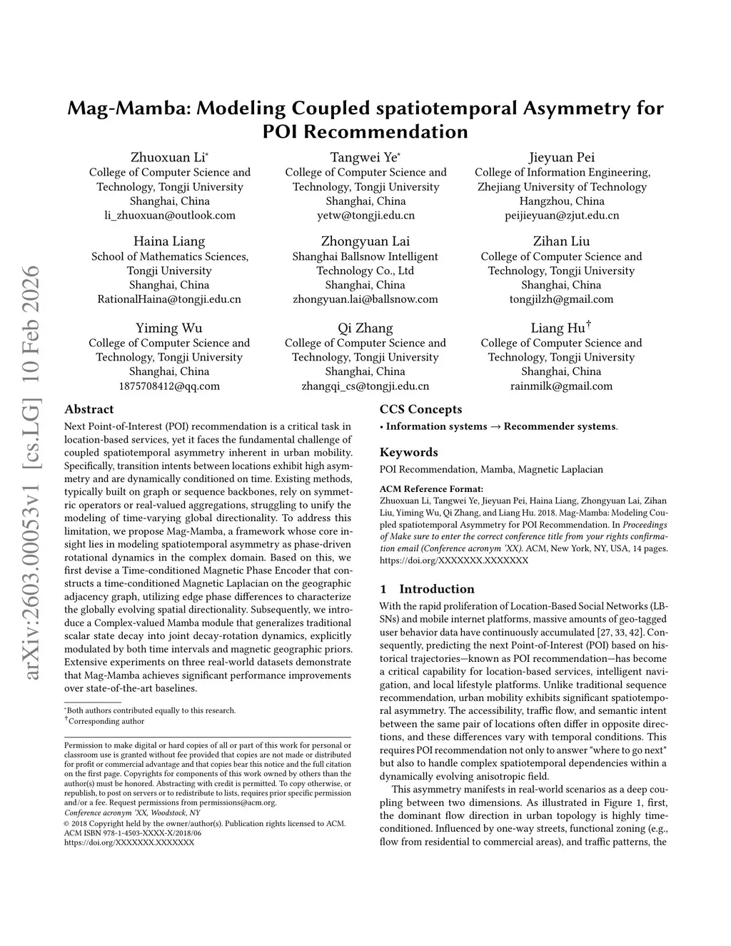 Mag-Mamba: Modeling Coupled spatiotemporal Asymmetry for POI Recommendation
