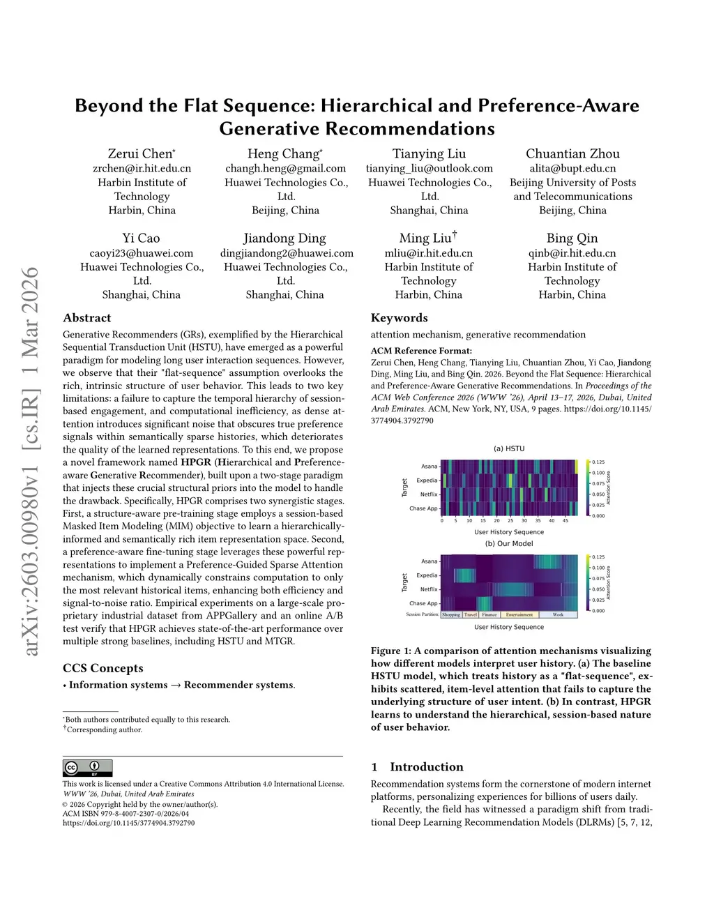 Beyond the Flat Sequence: Hierarchical and Preference-Aware Generative Recommendations