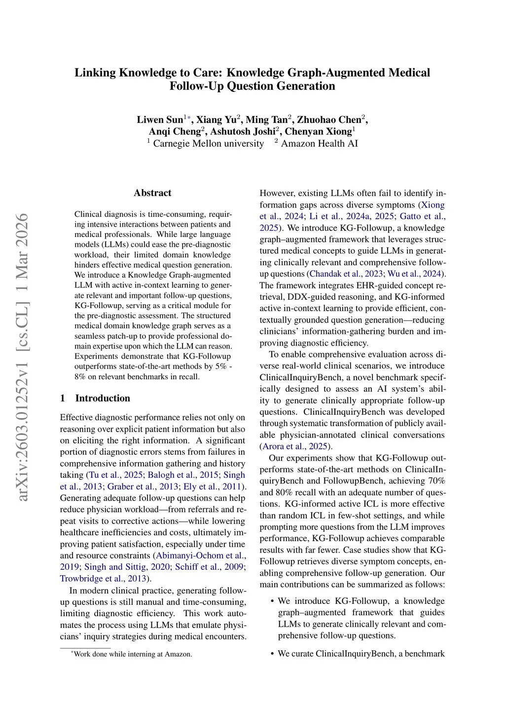 Linking Knowledge to Care: Knowledge Graph-Augmented Medical Follow-Up Question Generation