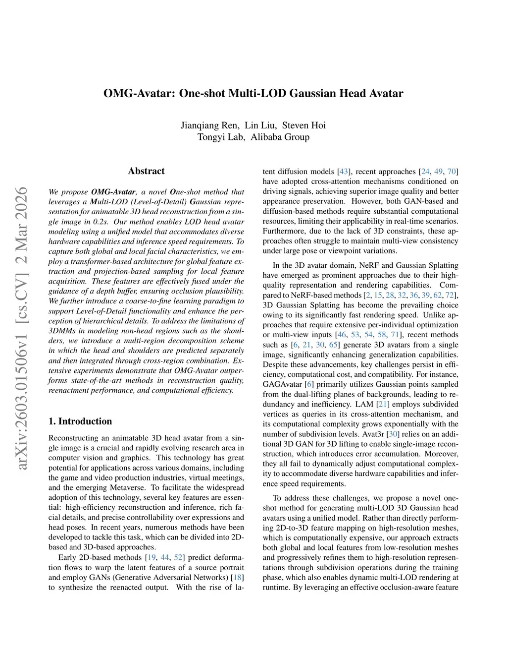 OMG-Avatar: One-shot Multi-LOD Gaussian Head Avatar