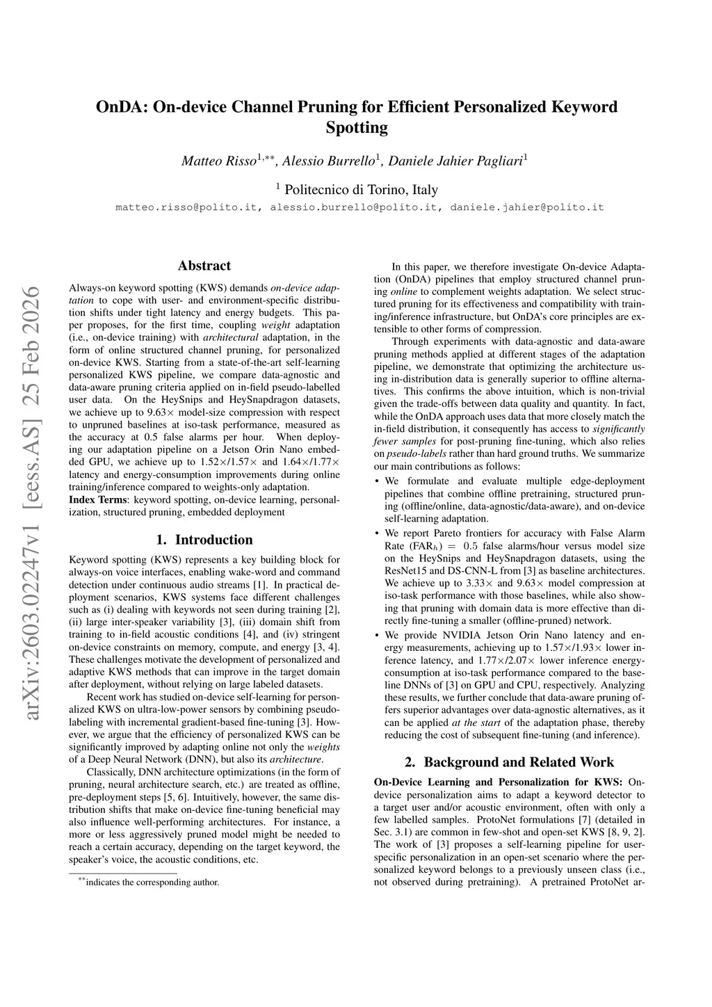 OnDA: On-device Channel Pruning for Efficient Personalized Keyword Spotting