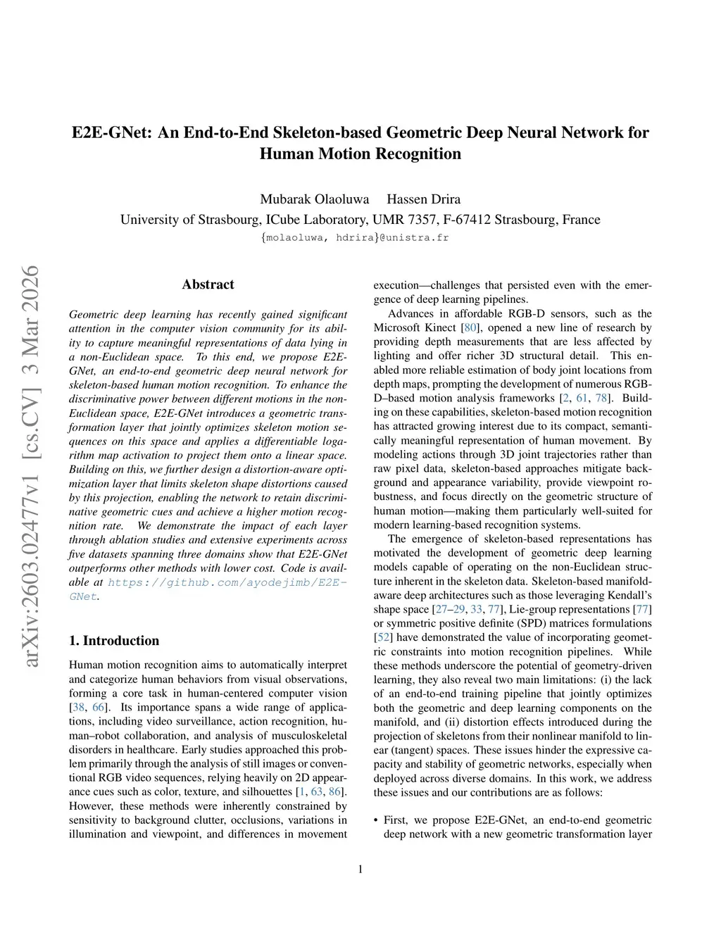 E2E-GNet: An End-to-End Skeleton-based Geometric Deep Neural Network for Human Motion Recognition