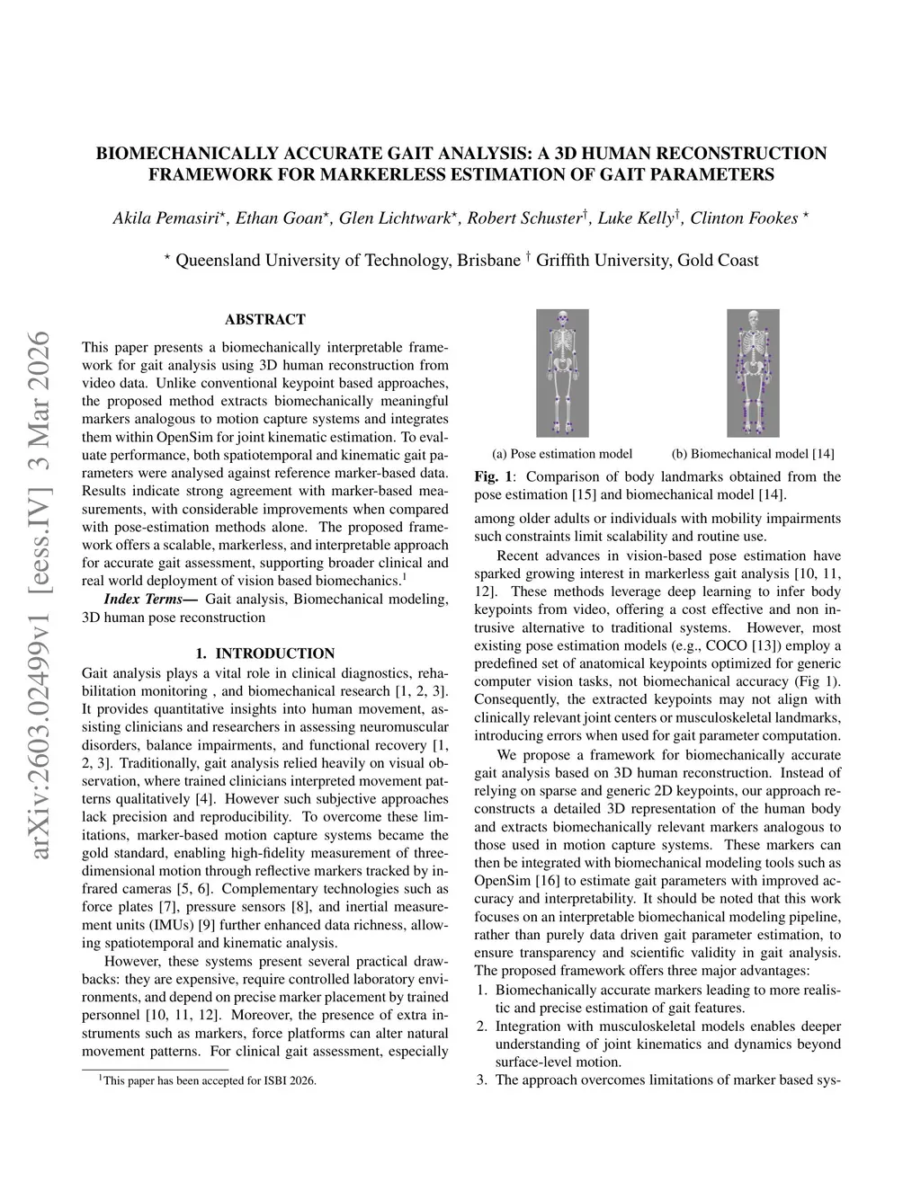 Biomechanically Accurate Gait Analysis: A 3d Human Reconstruction Framework for Markerless Estimation of Gait Parameters