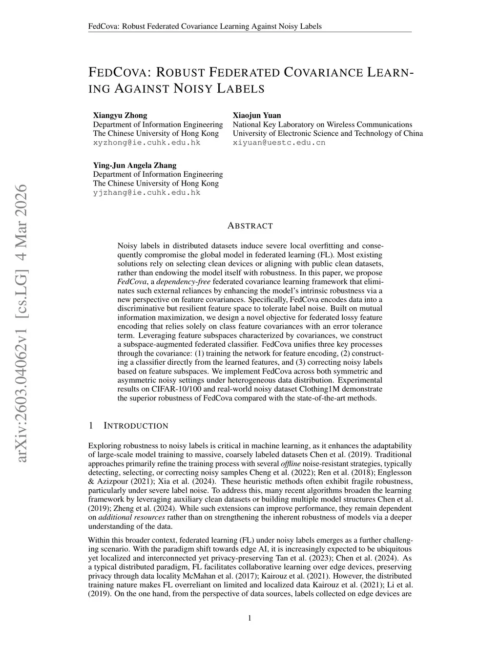 FedCova: Robust Federated Covariance Learning Against Noisy Labels