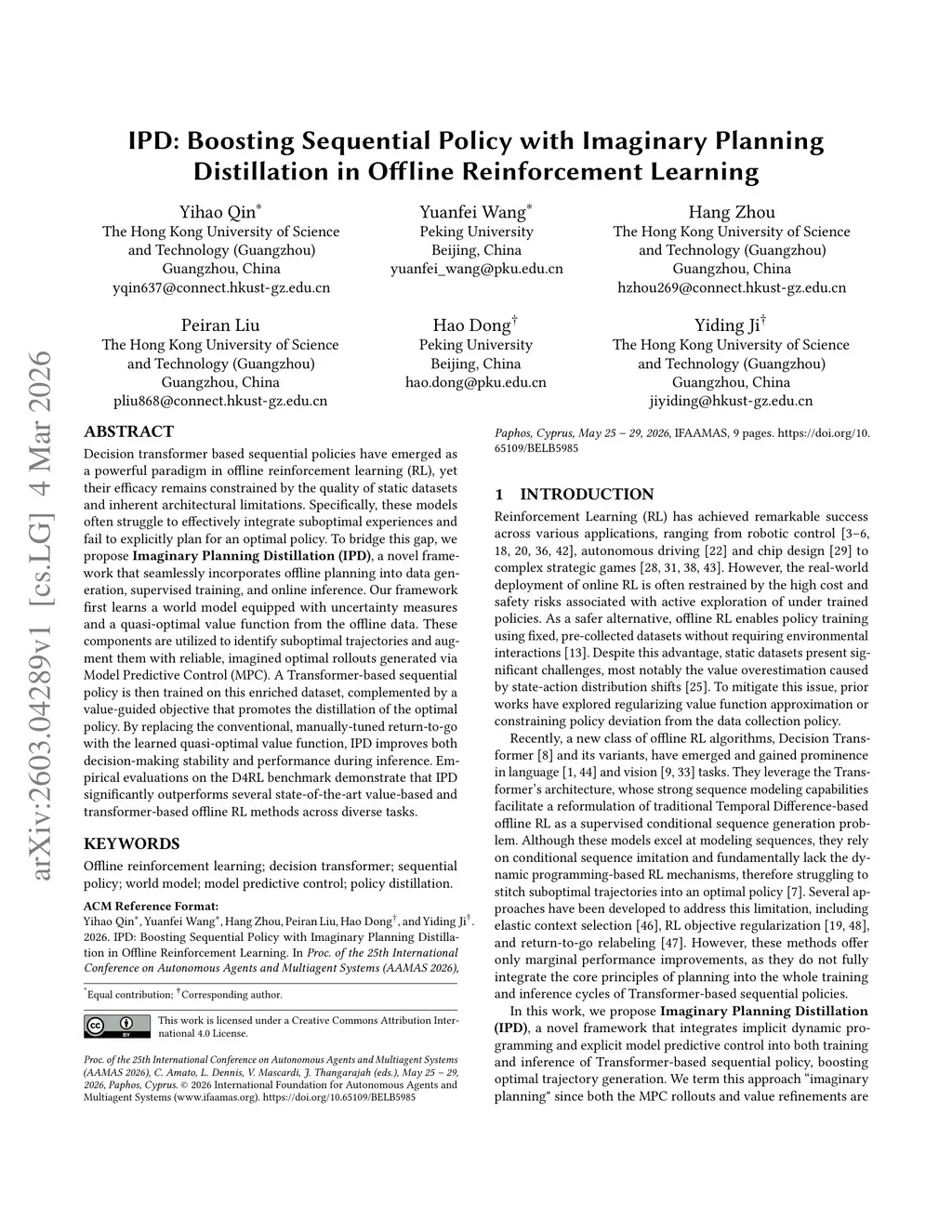 IPD: Boosting Sequential Policy with Imaginary Planning Distillation in Offline Reinforcement Learning