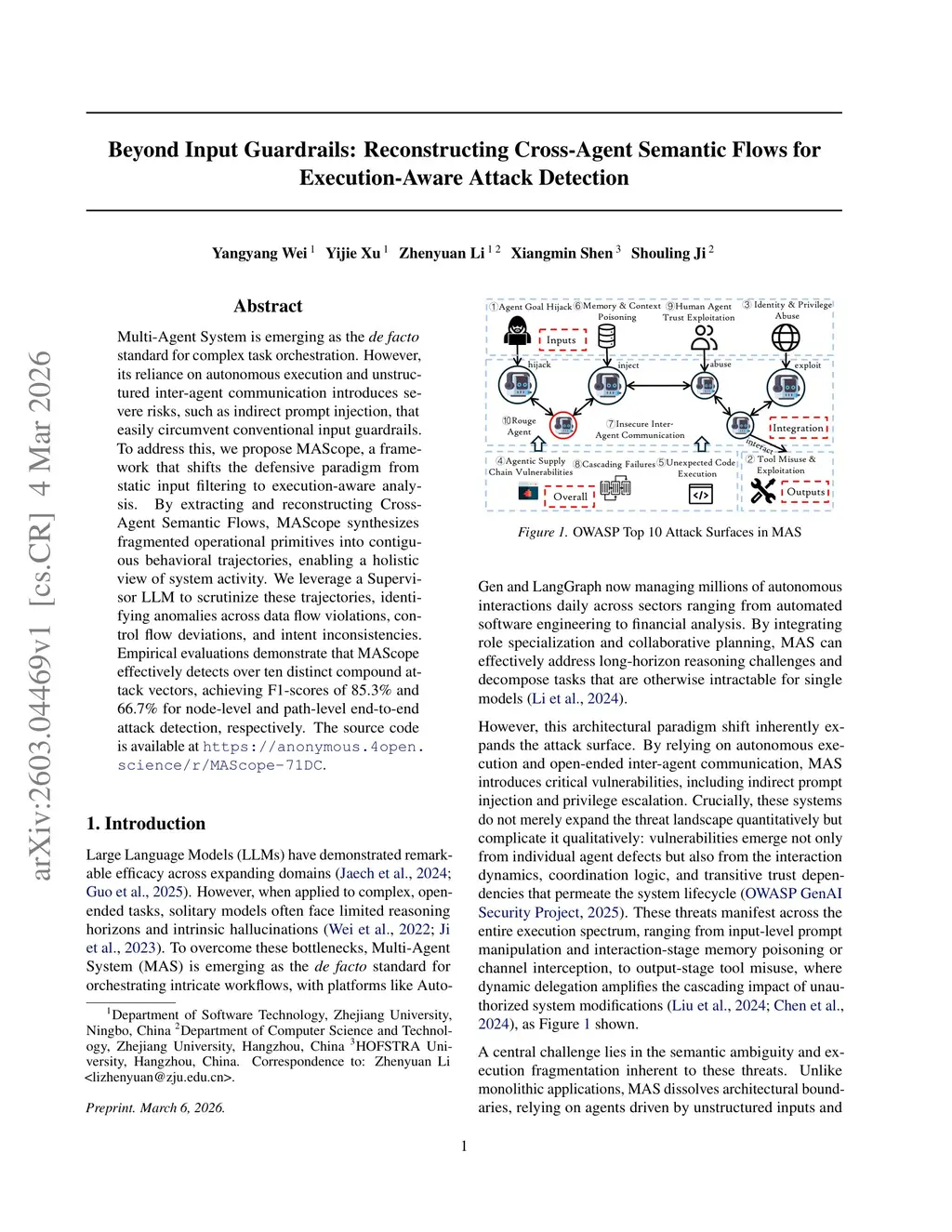 Multi-Agent System is emerging as the \textit{de facto} standard for complex task orchestration. However, its reliance on autonomous execution and unstructured inter-agent communication introduces severe risks, such as indirect prompt injection, that easily circumvent conventional input guardrails. To address this, we propose \SysName, a framework that shifts the defensive paradigm from static input filtering to execution-aware analysis. By extracting and reconstructing Cross-Agent Semantic Flows, \SysName synthesizes fragmented operational primitives into contiguous behavioral trajectories, enabling a holistic view of system activity. We leverage a Supervisor LLM to scrutinize these trajectories, identifying anomalies across data flow violations, control flow deviations, and intent inconsistencies. Empirical evaluations demonstrate that \SysName effectively detects over ten distinct compound attack vectors, achieving F1-scores of 85.3\% and 66.7\% for node-level and path-level end-to-end attack detection, respectively. The source code is available atthis https URL.
