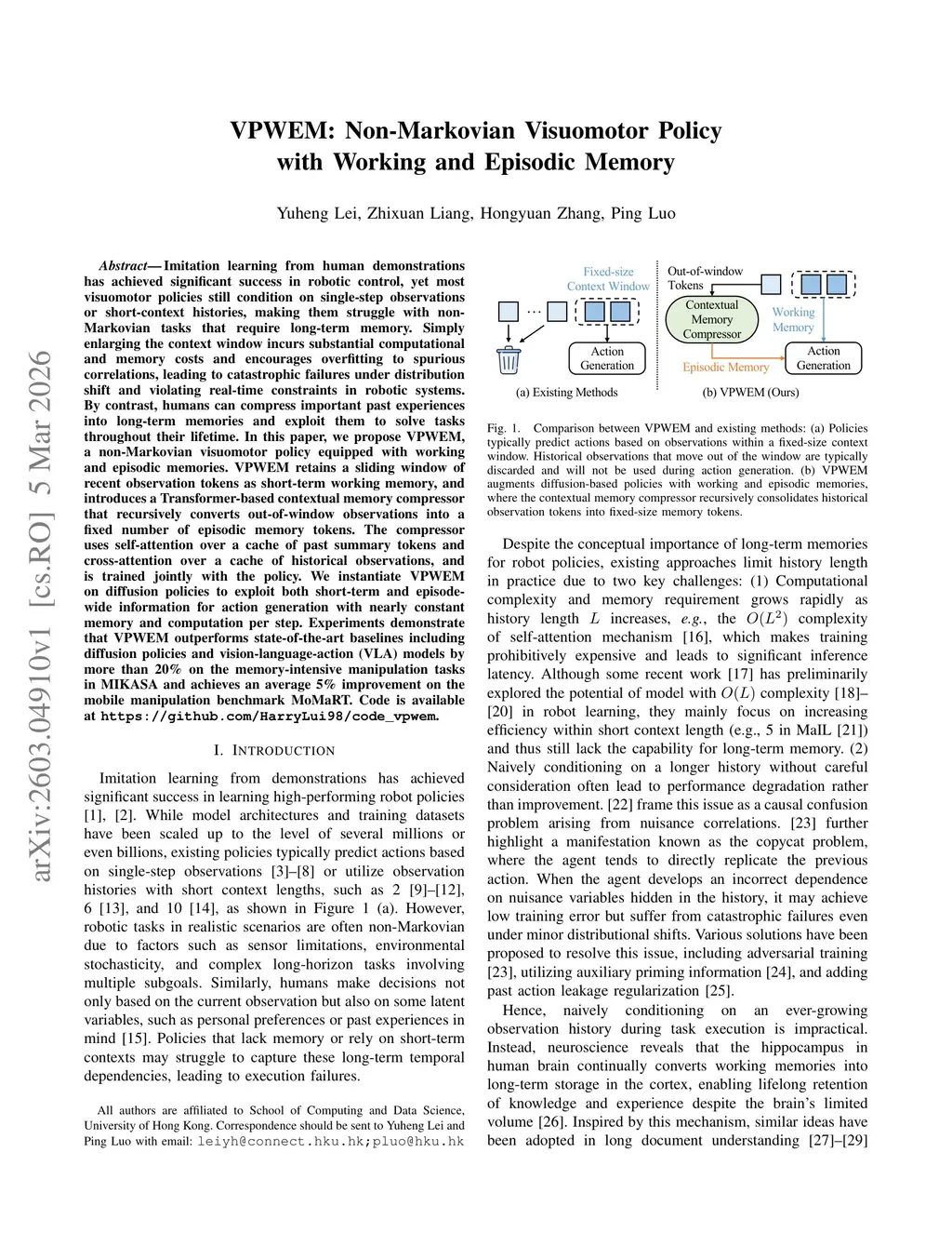 VPWEM: Non-Markovian Visuomotor Policy with Working and Episodic Memory