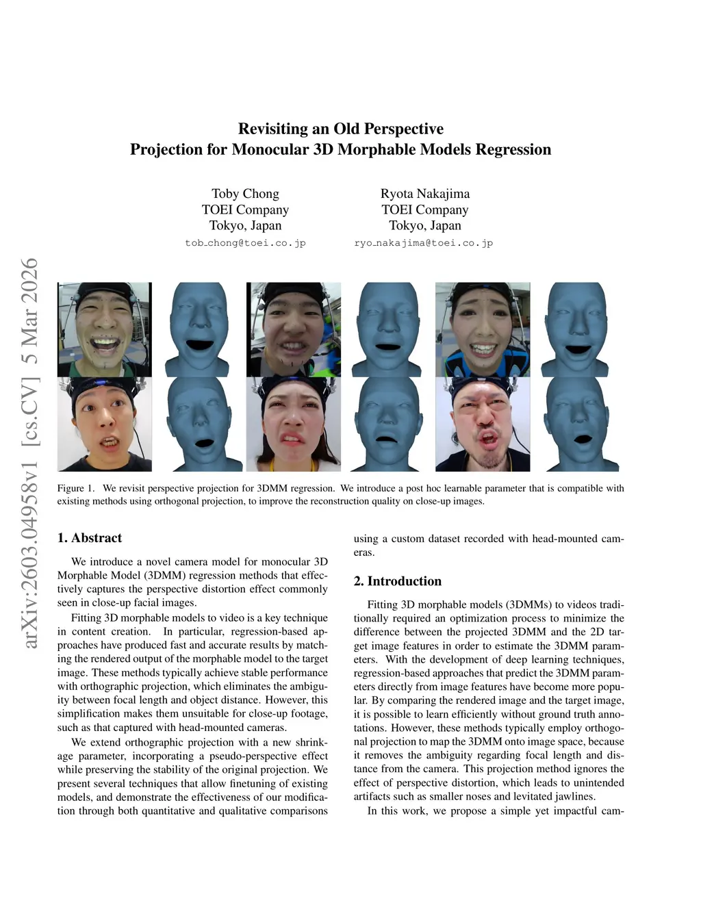 We introduce a novel camera model for monocular 3D Morphable Model (3DMM) regression methods that effectively captures the perspective distortion effect commonly seen in close-up facial images.Fitting 3D morphable models to video is a key technique in content creation. In particular, regression-based approaches have produced fast and accurate results by matching the rendered output of the morphable model to the target image. These methods typically achieve stable performance with orthographic projection, which eliminates the ambiguity between focal length and object distance. However, this simplification makes them unsuitable for close-up footage, such as that captured with head-mounted cameras.We extend orthographic projection with a new shrinkage parameter, incorporating a pseudo-perspective effect while preserving the stability of the original projection. We present several techniques that allow finetuning of existing models, and demonstrate the effectiveness of our modification through both quantitative and qualitative comparisons using a custom dataset recorded with head-mounted cameras.