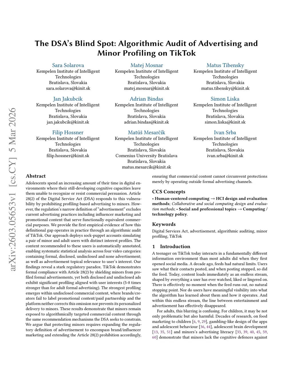 The DSA's Blind Spot: Algorithmic Audit of Advertising and Minor Profiling on TikTok