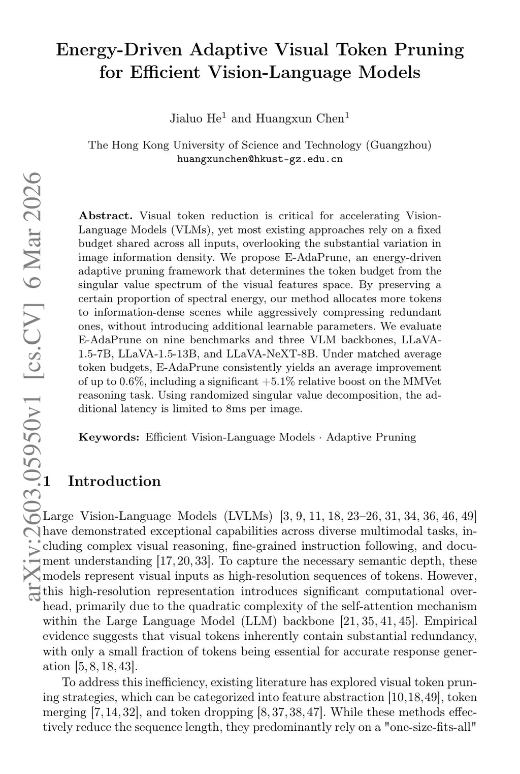 Energy-Driven Adaptive Visual Token Pruning for Efficient Vision-Language Models