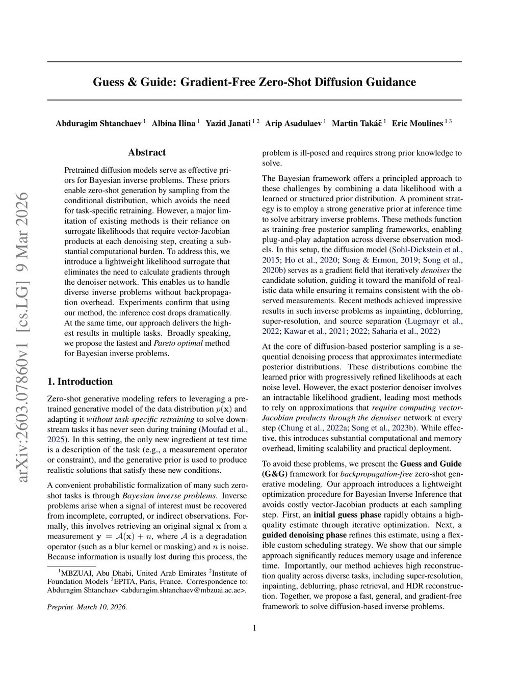 Pretrained diffusion models serve as effective priors for Bayesian inverse problems. These priors enable zero-shot generation by sampling from the conditional distribution, which avoids the need for task-specific retraining. However, a major limitation of existing methods is their reliance on surrogate likelihoods that require vector-Jacobian products at each denoising step, creating a substantial computational burden. To address this, we introduce a lightweight likelihood surrogate that eliminates the need to calculate gradients through the denoiser network. This enables us to handle diverse inverse problems without backpropagation overhead. Experiments confirm that using our method, the inference cost drops dramatically. At the same time, our approach delivers the highest results in multiple tasks. Broadly speaking, we propose the fastest and Pareto optimal method for Bayesian inverse problems.