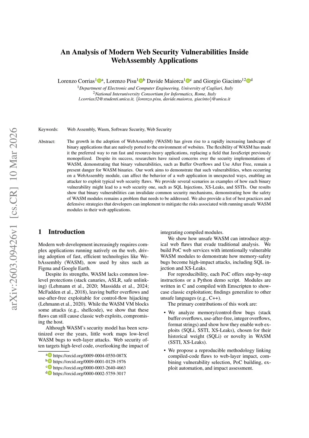 An Analysis of Modern Web Security Vulnerabilities Inside WebAssembly Applications