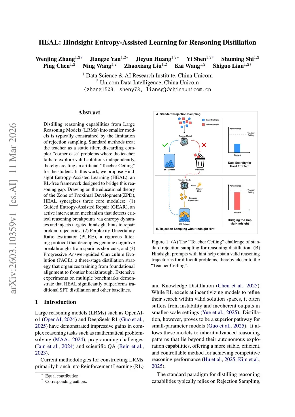Distilling reasoning capabilities from Large Reasoning Models (LRMs) into smaller models is typically constrained by the limitation of rejection sampling. Standard methods treat the teacher as a static filter, discarding complex "corner-case" problems where the teacher fails to explore valid solutions independently, thereby creating an artificial "Teacher Ceiling" for the student. In this work, we propose Hindsight Entropy-Assisted Learning (HEAL), an RL-free framework designed to bridge this reasoning gap. Drawing on the educational theory of the Zone of Proximal Development(ZPD), HEAL synergizes three core modules: (1) Guided Entropy-Assisted Repair (GEAR), an active intervention mechanism that detects critical reasoning breakpoints via entropy dynamics and injects targeted hindsight hints to repair broken trajectories; (2) Perplexity-Uncertainty Ratio Estimator (PURE), a rigorous filtering protocol that decouples genuine cognitive breakthroughs from spurious shortcuts; and (3) Progressive Answer-guided Curriculum Evolution (PACE), a three-stage distillation strategy that organizes training from foundational alignment to frontier breakthrough. Extensive experiments on multiple benchmarks demonstrate that HEAL significantly outperforms traditional SFT distillation and other baselines.