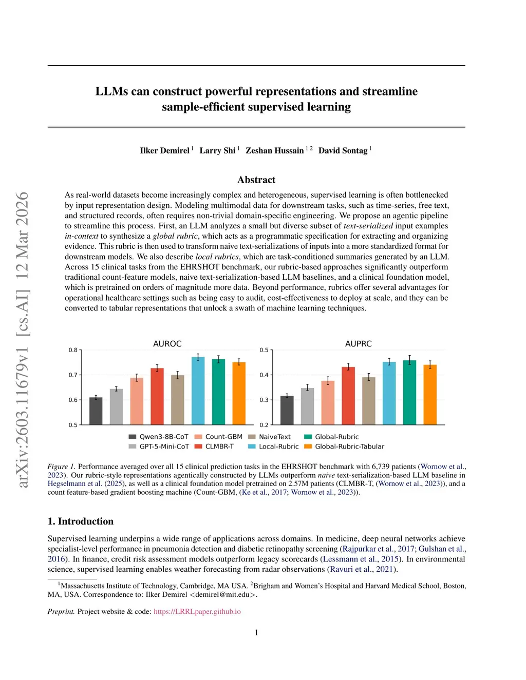 LLMs can construct powerful representations and streamline sample-efficient supervised learning