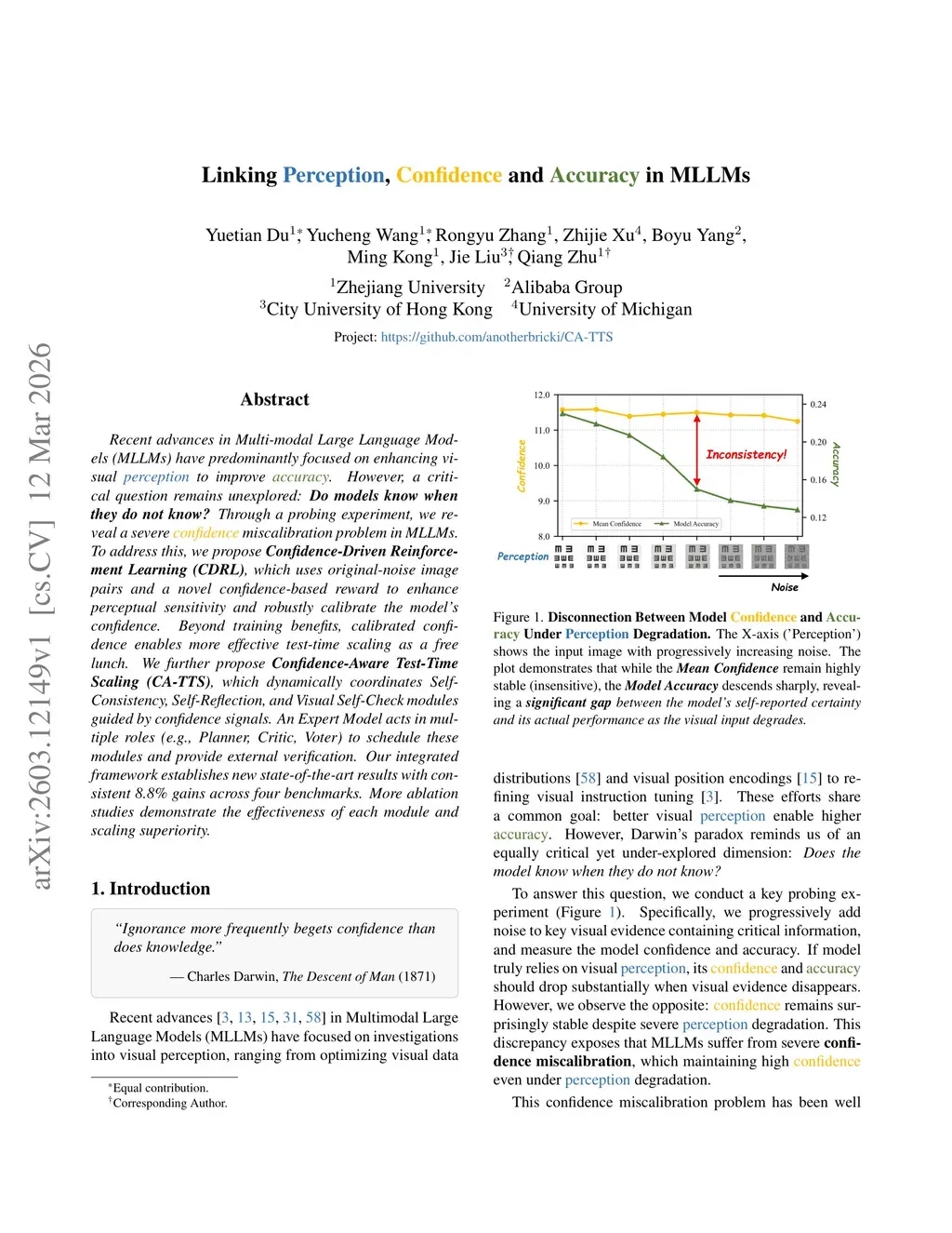 Linking Perception, Confidence and Accuracy in MLLMs