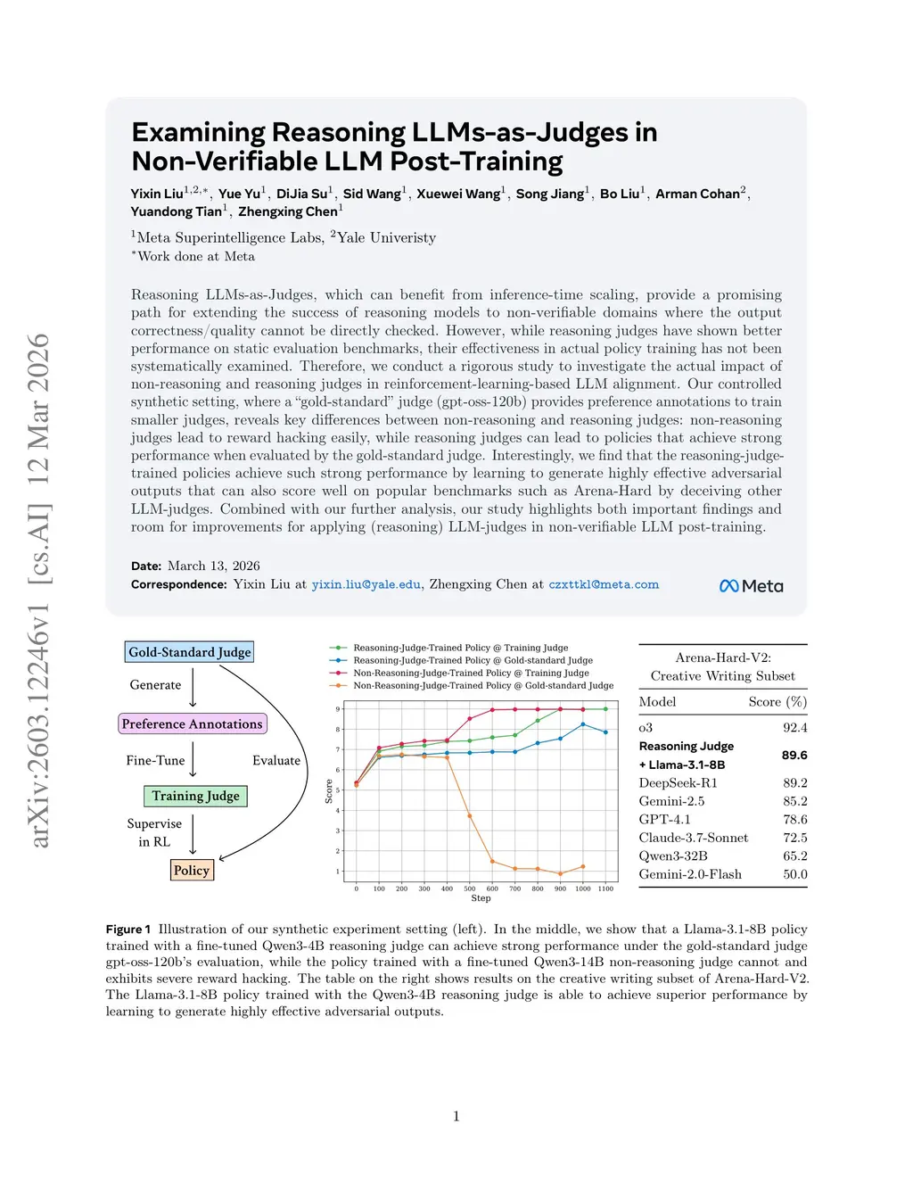 Examining Reasoning LLMs-as-Judges in Non-Verifiable LLM Post-Training