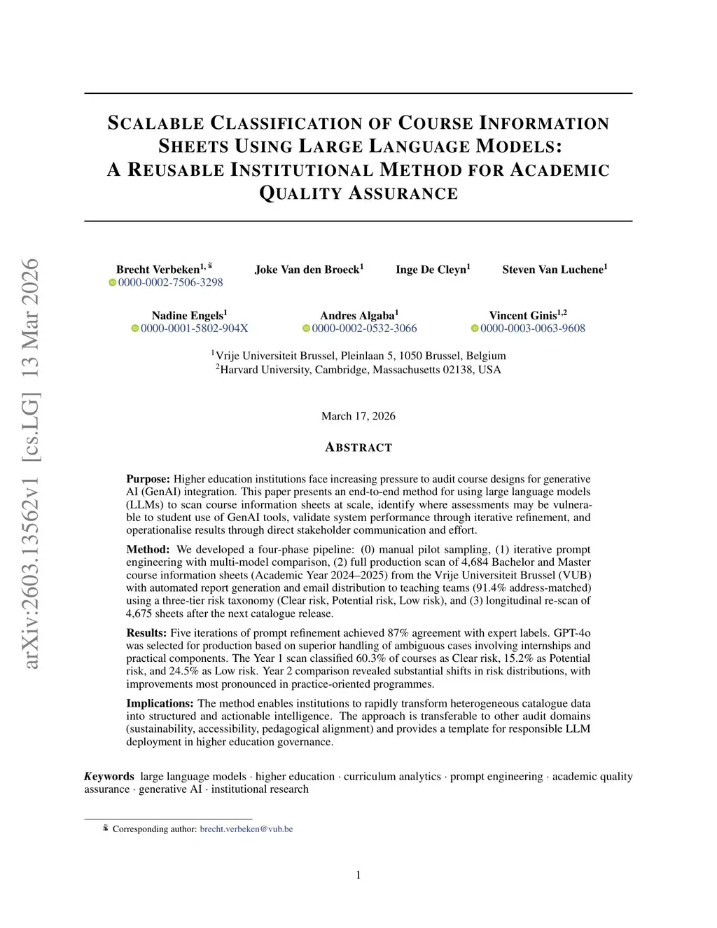 Scalable Classification of Course Information Sheets Using Large Language Models: A Reusable Institutional Method for Academic Quality Assurance