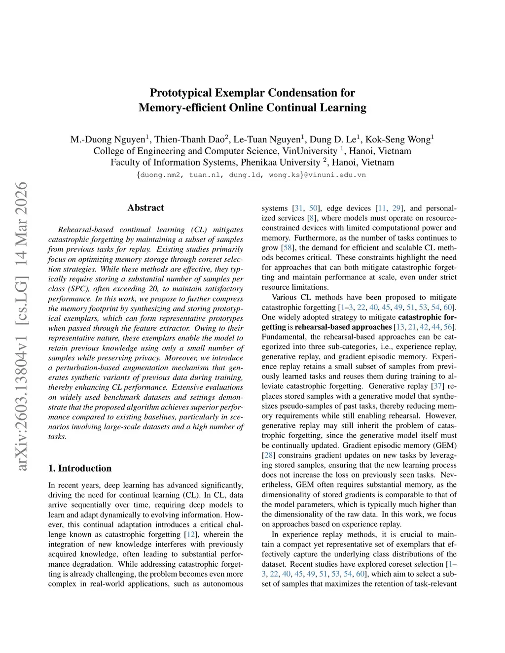 Memory-efficient Continual Learning with Prototypical Exemplar Condensation