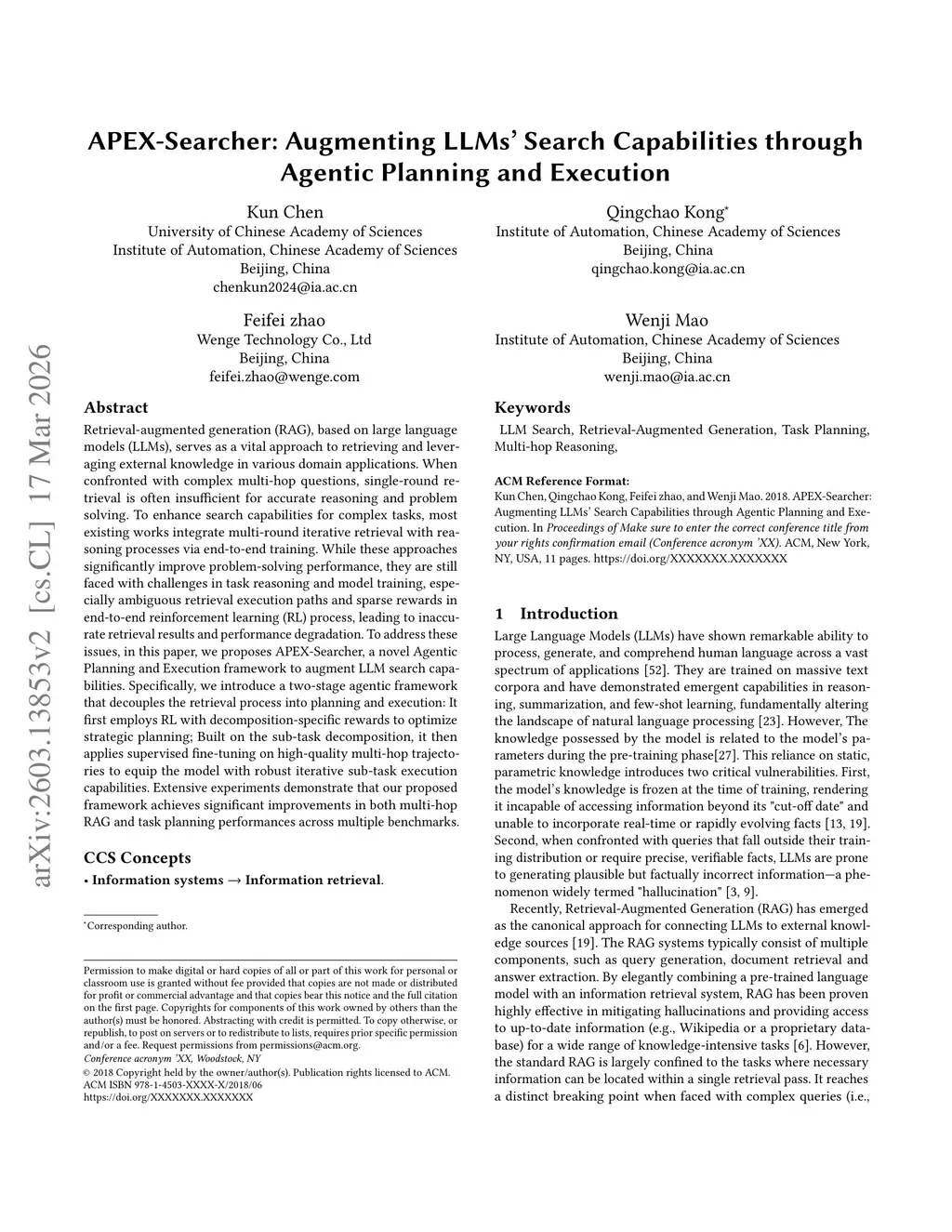 APEX-Searcher: Augmenting LLMs' Search Capabilities through Agentic Planning and Execution