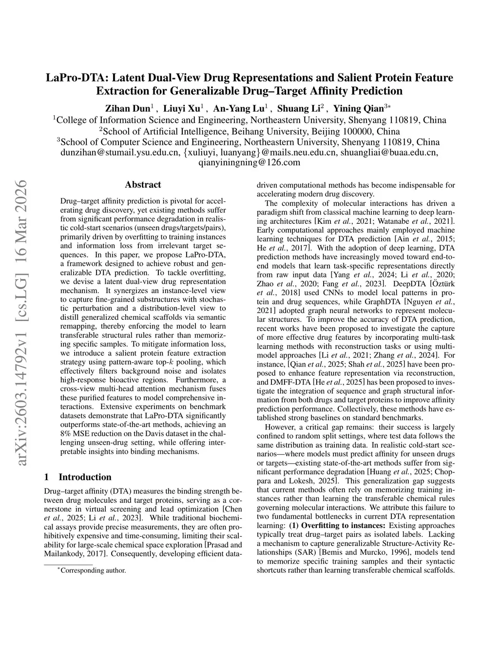 LaPro-DTA: Latent Dual-View Drug Representations and Salient Protein Feature Extraction for Generalizable Drug--Target Affinity Prediction