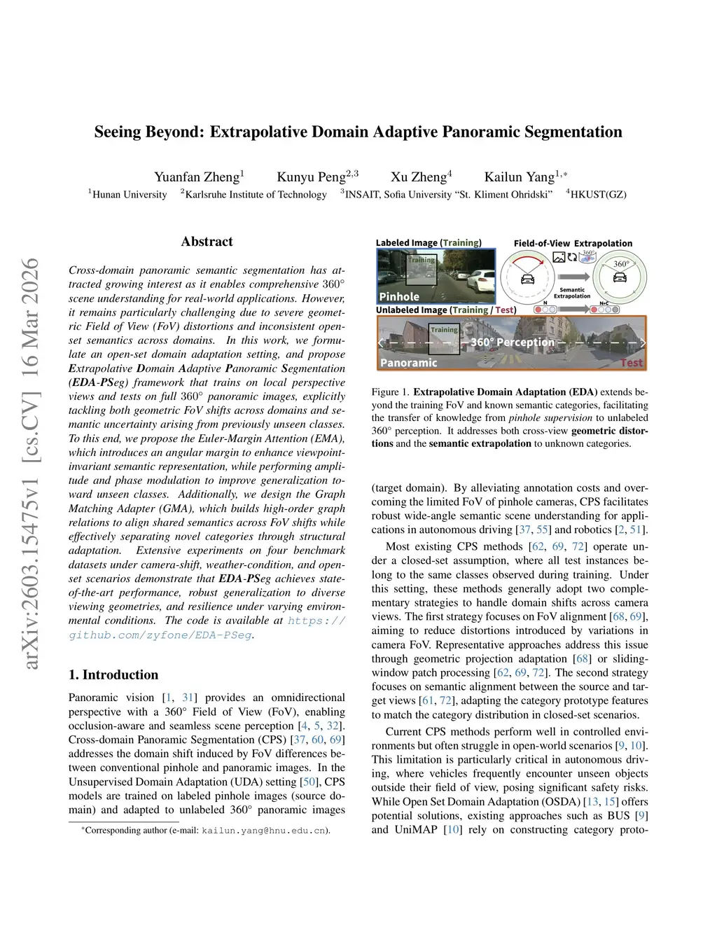 Seeing Beyond: Extrapolative Domain Adaptive Panoramic Segmentation