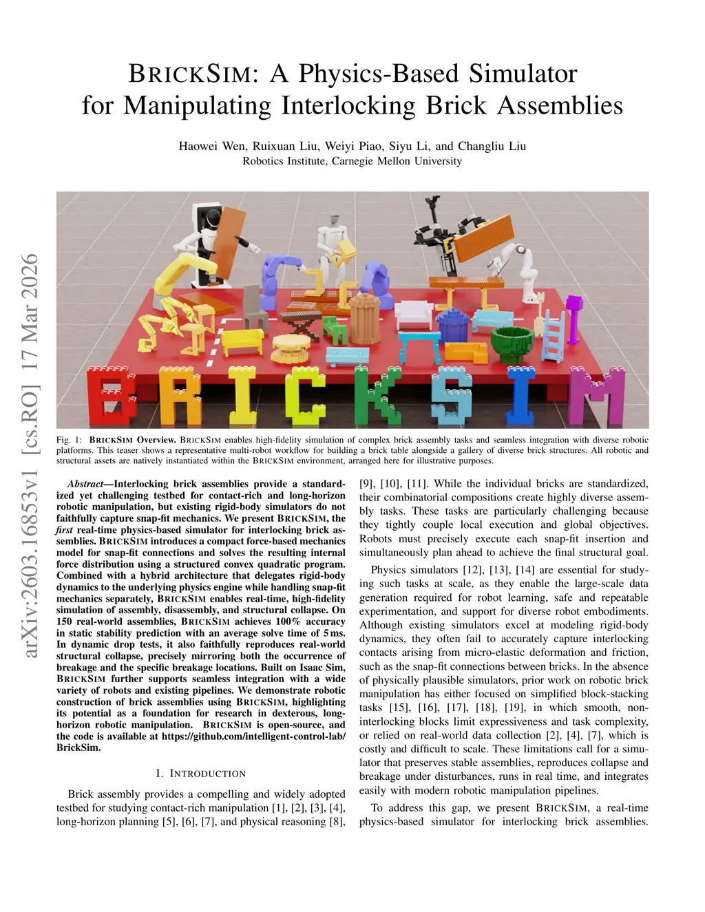 BrickSim: A Physics-Based Simulator for Manipulating Interlocking Brick Assemblies