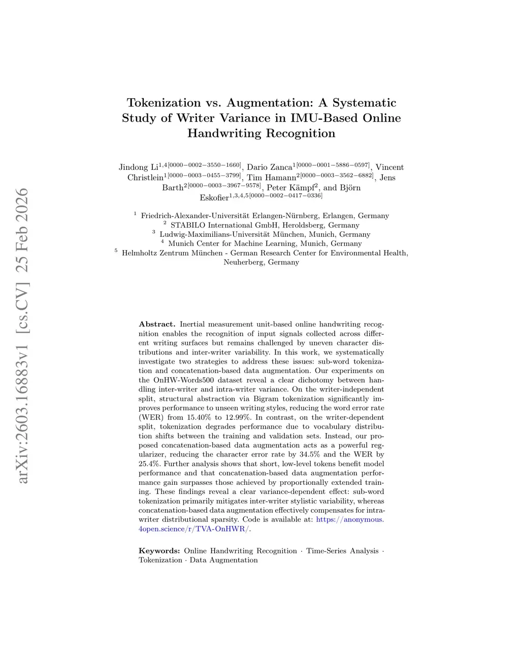 Tokenization vs. Augmentation: A Systematic Study of Writer Variance in IMU-Based Online Handwriting Recognition