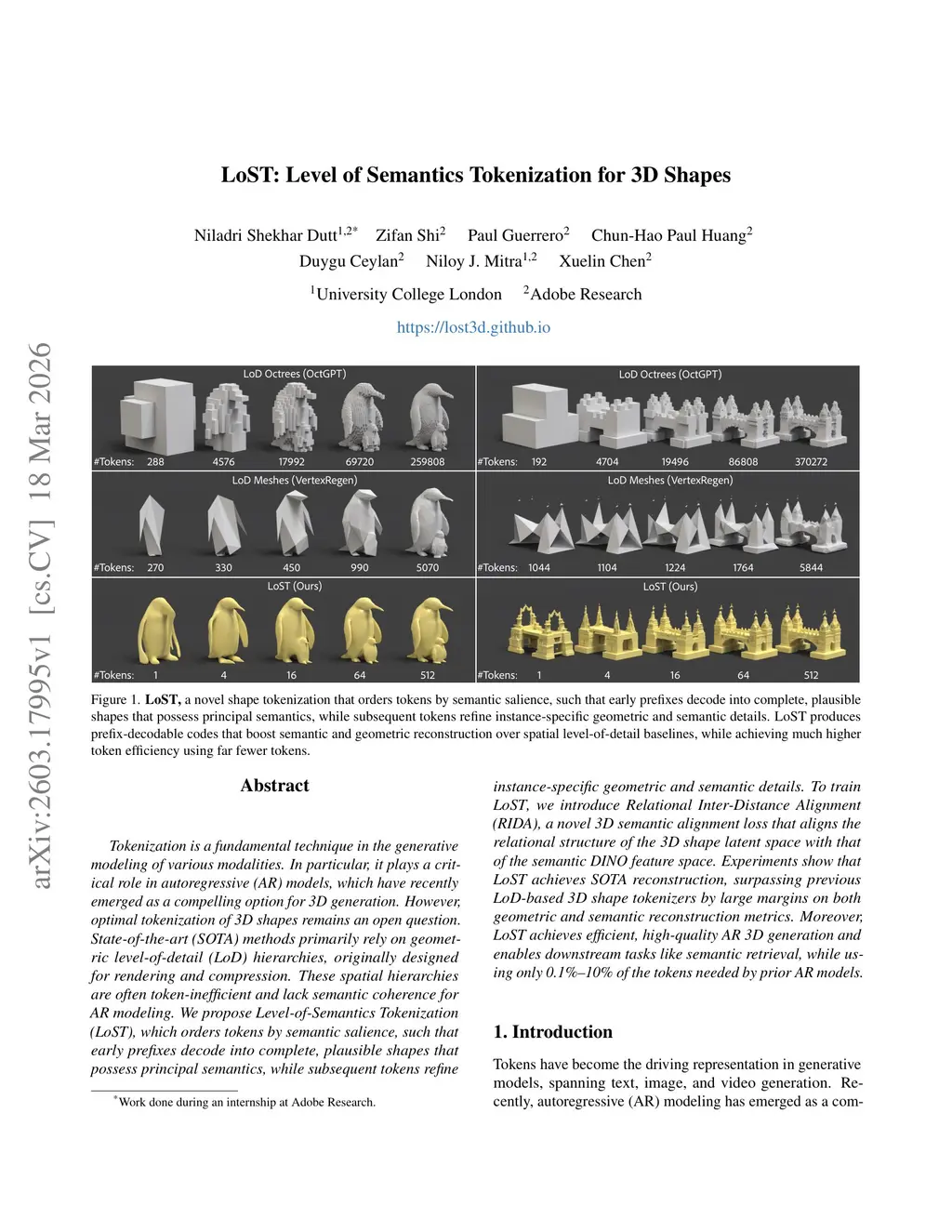 LoST: Level of Semantics Tokenization for 3D Shapes
