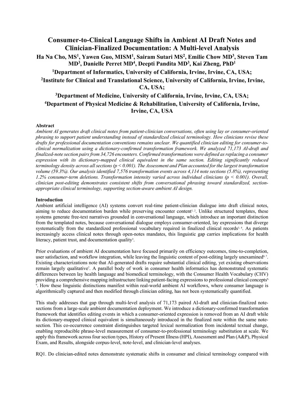 Consumer-to-Clinical Language Shifts in Ambient AI Draft Notes and Clinician-Finalized Documentation: A Multi-level Analysis