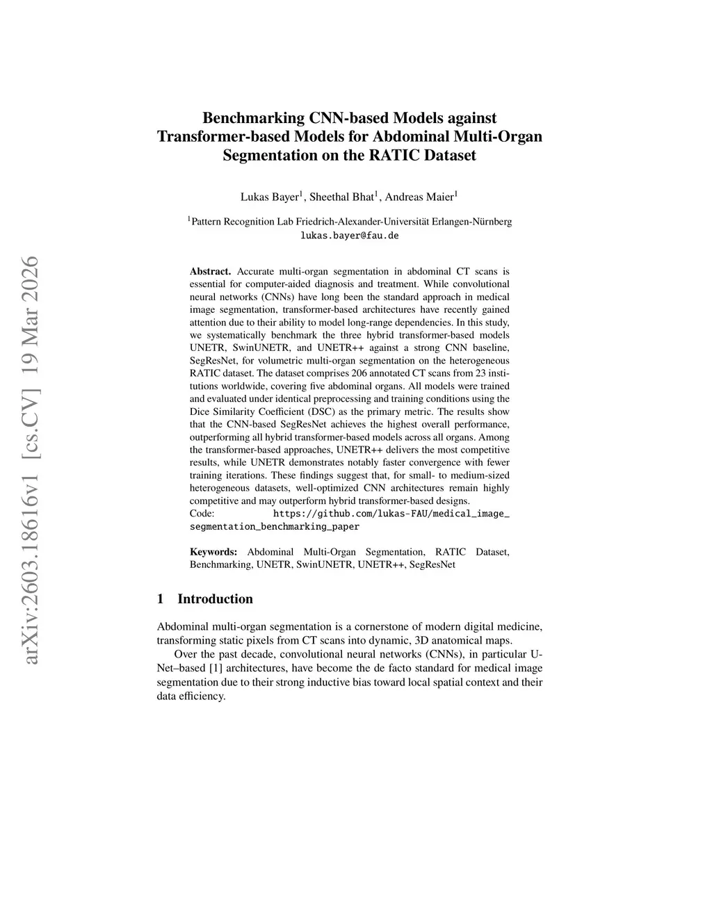 Benchmarking CNN-based Models against Transformer-based Models for Abdominal Multi-Organ Segmentation on the RATIC Dataset