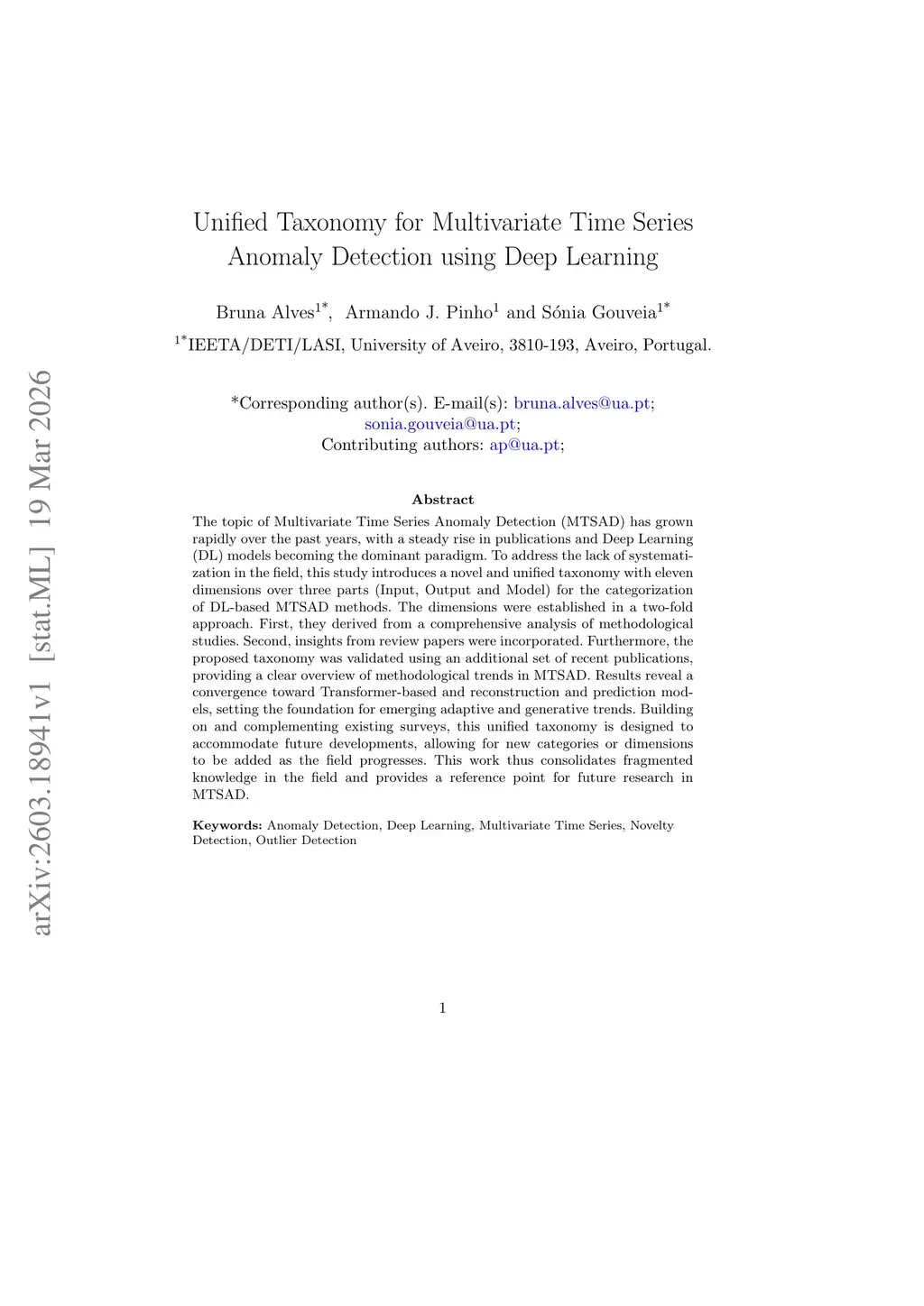 Unified Taxonomy for Multivariate Time Series Anomaly Detection using Deep Learning