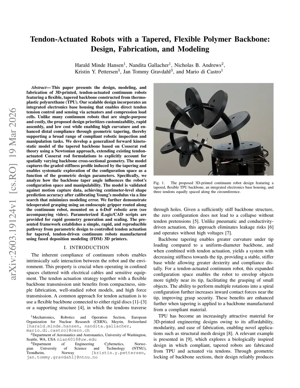 Tendon-Actuated Robots with a Tapered, Flexible Polymer Backbone: Design, Fabrication, and Modeling