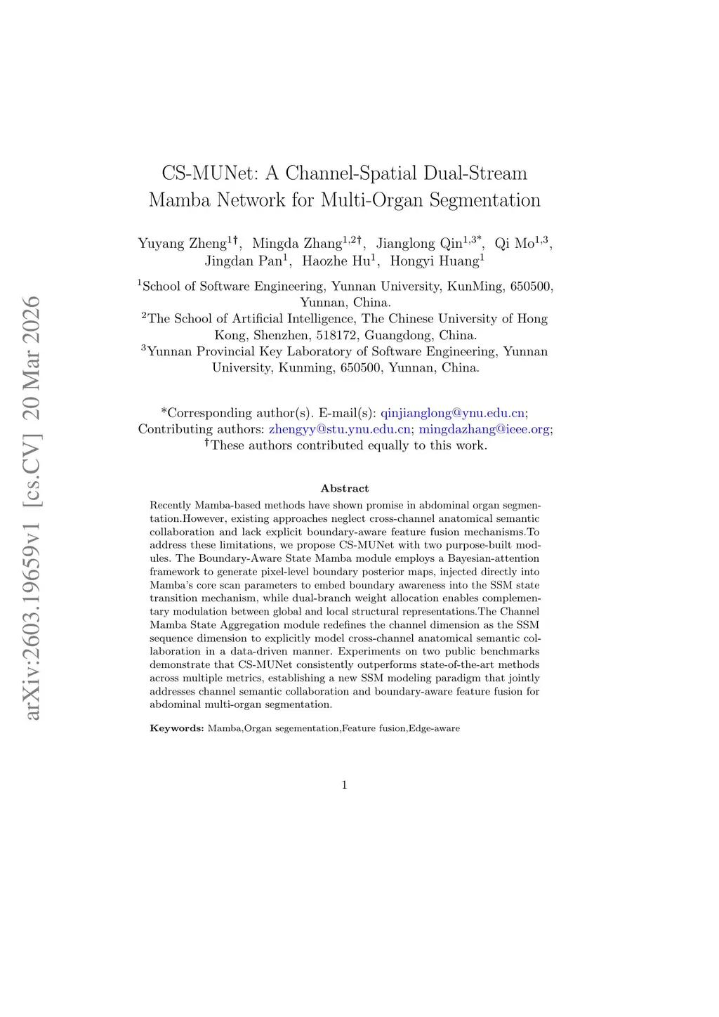 CS-MUNet: A Channel-Spatial Dual-Stream Mamba Network for Multi-Organ Segmentation