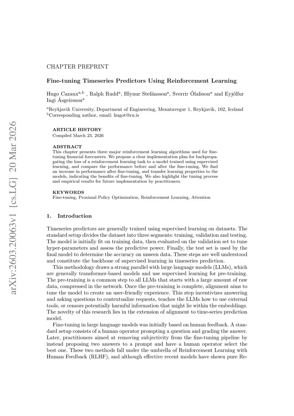 This chapter presents three major reinforcement learning algorithms used for fine-tuning financial forecasters. We propose a clear implementation plan for backpropagating the loss of a reinforcement learning task to a model trained using supervised learning, and compare the performance before and after the fine-tuning. We find an increase in performance after fine-tuning, and transfer learning properties to the models, indicating the benefits of fine-tuning. We also highlight the tuning process and empirical results for future implementation by practitioners.