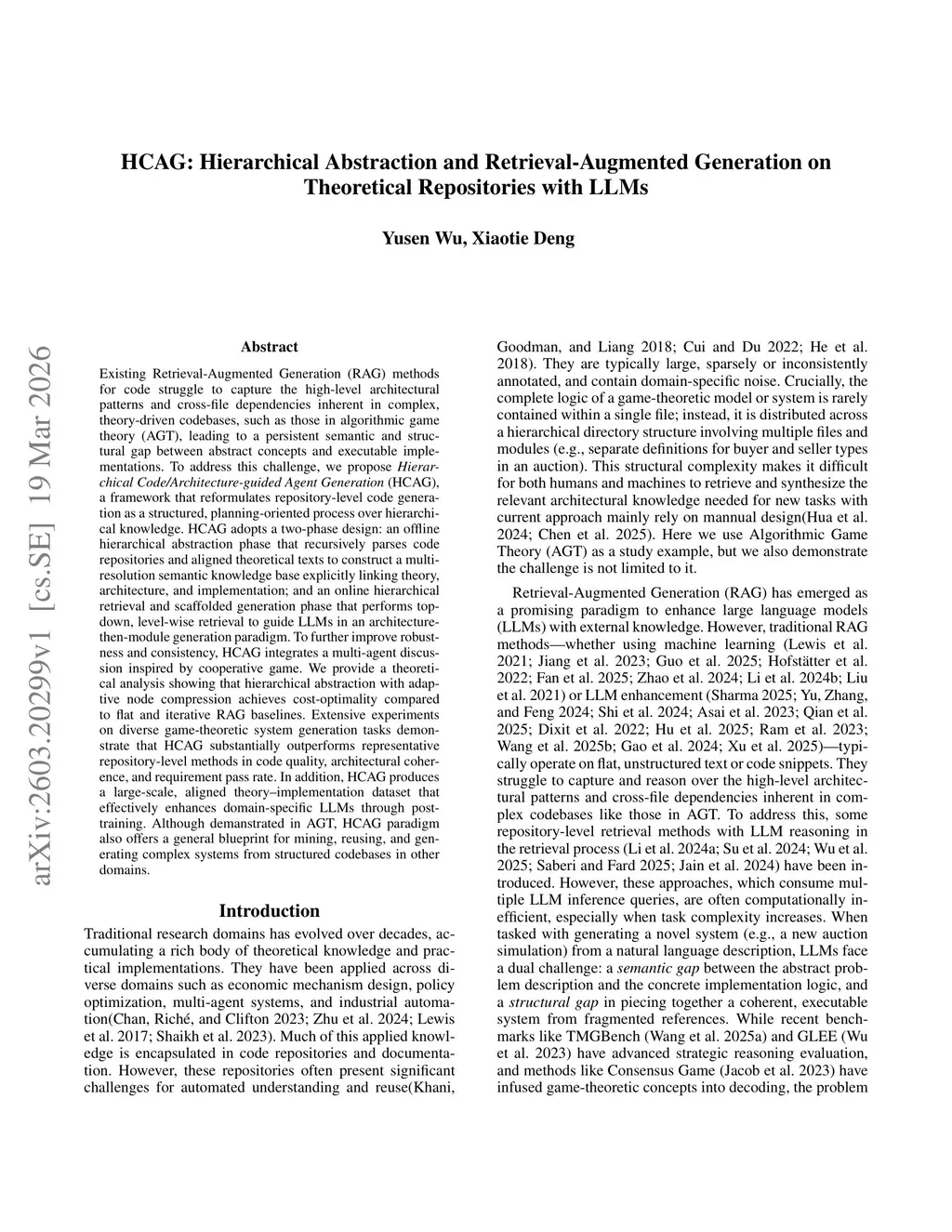 HCAG: Hierarchical Abstraction and Retrieval-Augmented Generation on Theoretical Repositories with LLMs